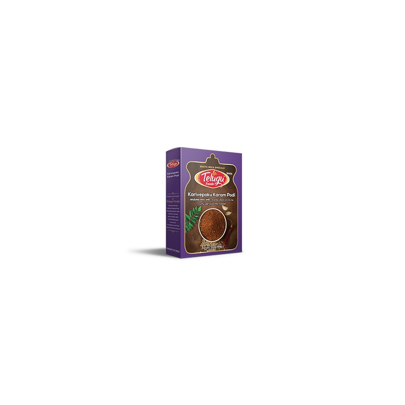 Karivepaku Karam Podi with Garlic (Curry leaves spice Mix) 100 gm - Telugu Foods - Buy 1 Get 1 Free